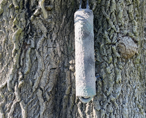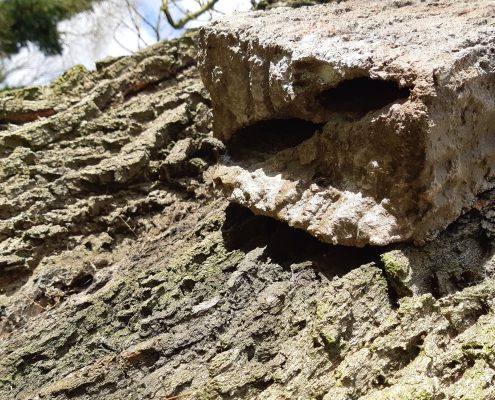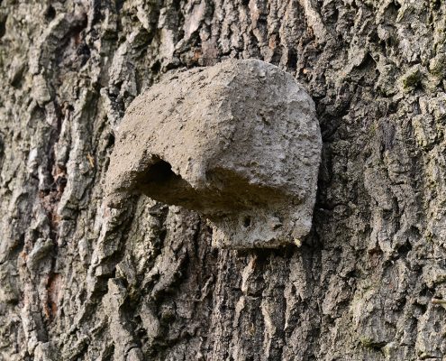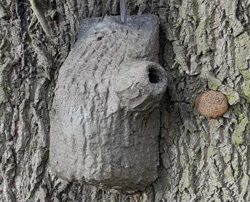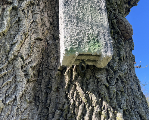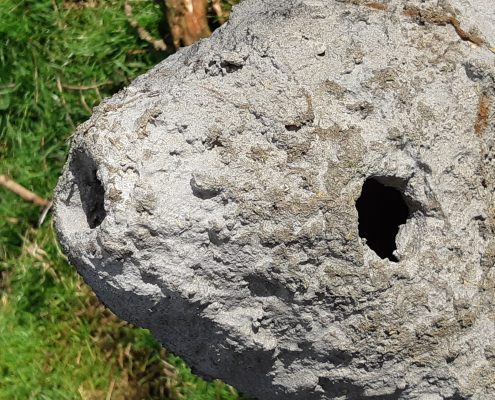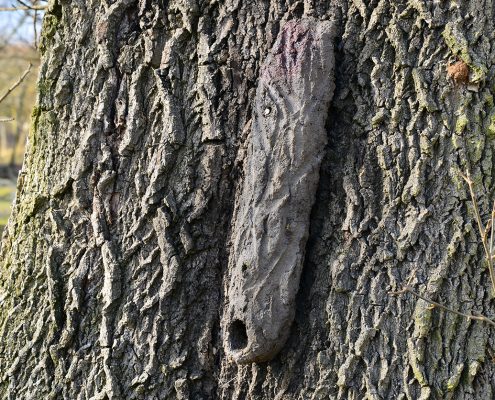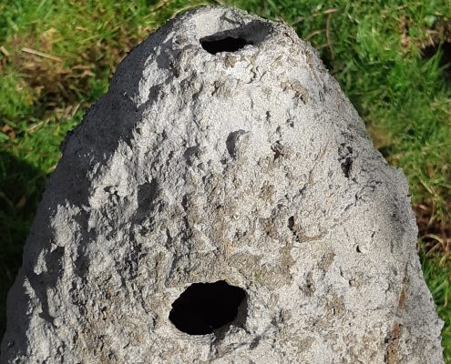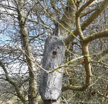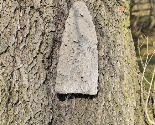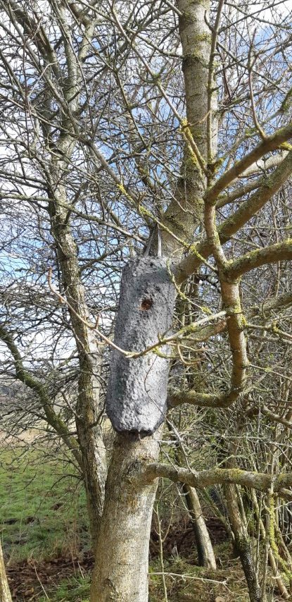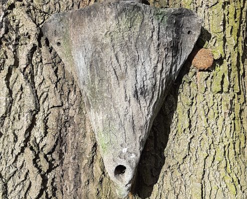 Bark Boxes are constructed using an incredibly tough felt made of recycled polyamide combined with a cement and recycled cellulose fibre mix.  The felt makes the construction of curves and more natural forms easy, the cellulose fibre will allow the outer layers to mellow and support lichens and mosses in time.